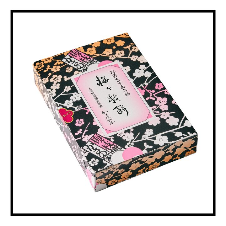 「梅ヶ枝餅」は、老婆が菅原道真公に梅の枝に刺した餅を差し入れたという伝説に由来する一品。大正11年創業の「かさの家」の「梅ヶ枝餅」は、創業当初から変わらぬ味を守り続けている。もち米とうるち米を合わせた粉を練り上げた生地で粒あんを包み、中央に梅の印をあしらった丸い型で丁寧に焼き上げている。