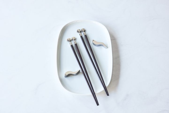 アレッサンドロ・メンディーニの未発表デザインをもとにしたお箸セット。長年にわたりアレッシの象徴的存在として活躍したデザイナーの世界観が息づく。 Hearst Owned