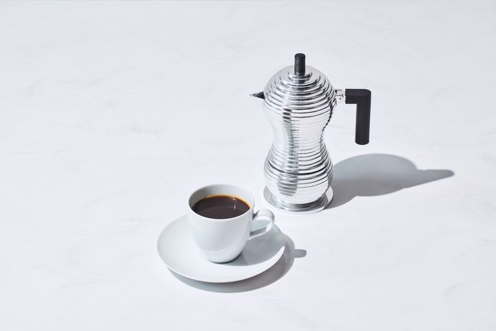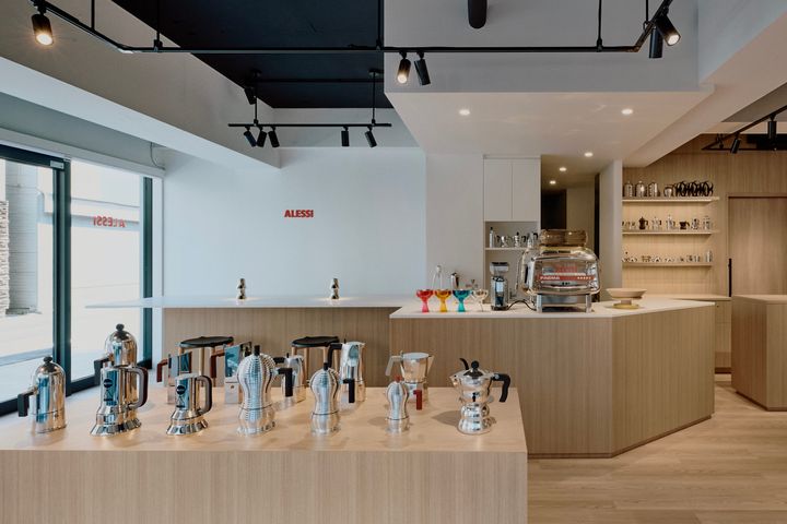 1階に併設されたカフェでは、ミケーレ・デ・ルッキやデイヴィッド・チッパーフィールドが手掛けた「アレッシ」のアイコンともいえるマキネッタで淹れたコーヒーを提供。プロダクトの魅力を、味わいとともに体験できる。 Hearst Owned