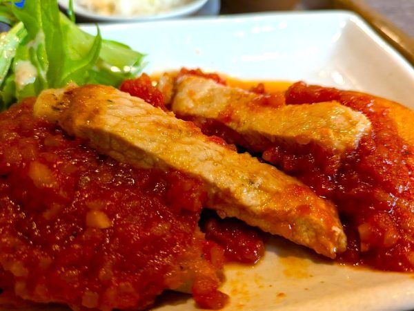 日替わり定食 トマトゴロゴロのトマトソースのポークチャップ 1000円
