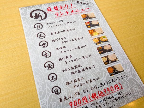 丼とお蕎麦がセットのお得な日替わりメニューはどれも990円!