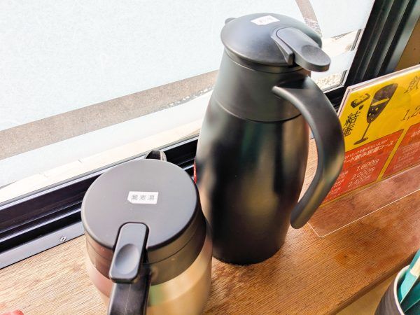 蕎麦湯は食事が運ばれるタイミングに提供されますが、熱々の蕎麦湯が入ったポットが各テーブルに置いてあるので、そちらも利用できます。