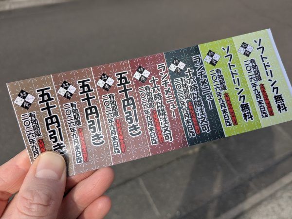 お会計後には、次回来店時に利用できるクーポン券をいただきました。 安価でいただけるのに、さらに割引券も使えるのー! と驚きながら、近いうちに必ず家族で再訪問しようと誓いました!