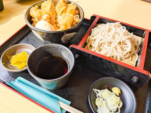 4つの丼セットから、半熟卵かしわ天丼セットを選択。 蕎麦は「盛り蕎麦・ざる蕎麦・かけ蕎麦・花蕎麦」の4種類から選べます。 私はざる蕎麦を注文しました♪