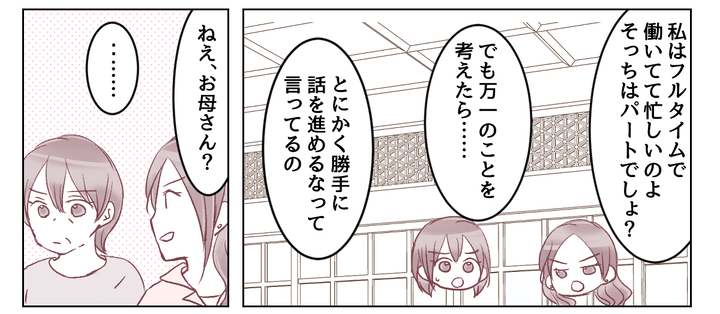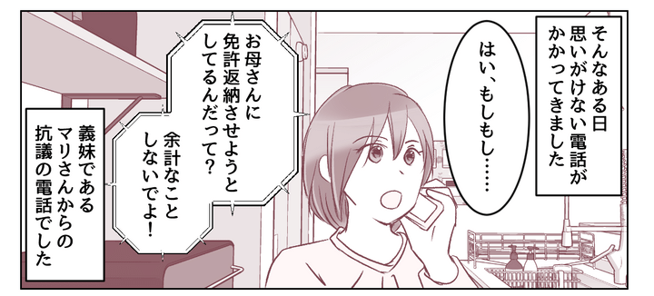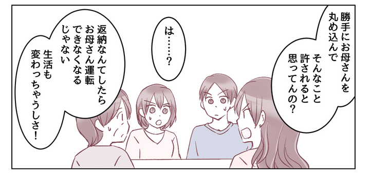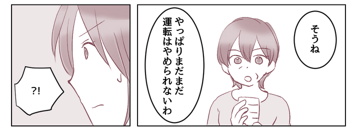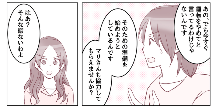 やがてそのやりとりを黙って聞いていた義母が「まだまだ運転する」と言い出しました。一度は納得してくれたはずなのに!? 義妹が登場したことで、また話はふりだしに戻ってしまったのでした。