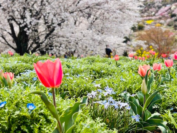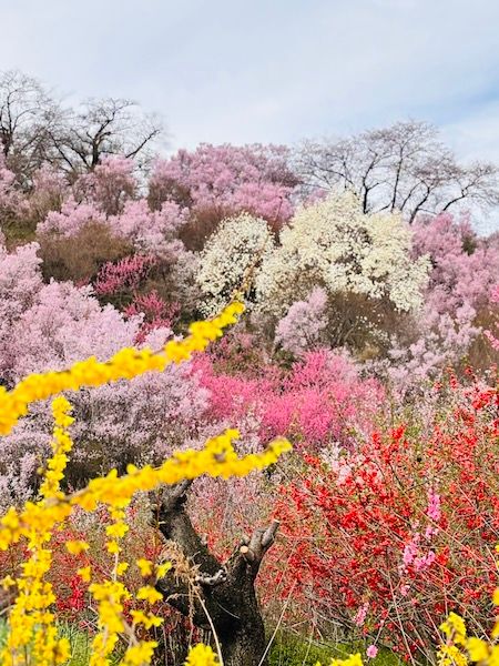 そのほかにもレンギョウや桜、花桃など、色とりどりの花々を一度に楽しめる“贅沢ショット”も魅力です。