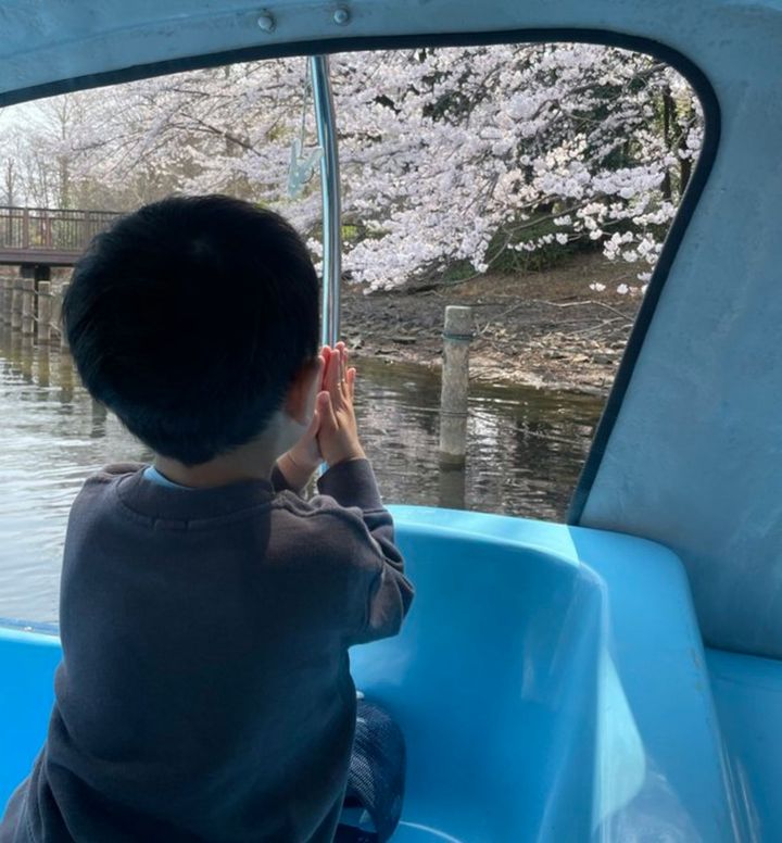 【尊い】ボートから木に向かって手を合わせて→4歳児の言葉に9千いいね「感謝できる子」「純粋すぎる」
