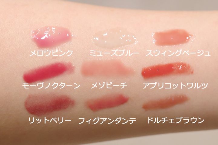 いずれも透明感のあるジェリーのような発色で、2色を組み合わせてもOK! もちろん、お手持ちのリップの上にグロスとして重ねても使いやすいクリアな発色です。