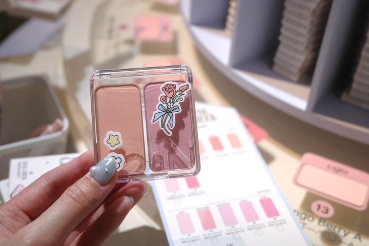 本イベントのメインコンテンツは、イェオンさんも「楽しみにしていた」と語る、デュアルチークを自分好みの2色で組み合わせられる「DIYデュアルチーク体験」。イベント内でHearts2Heartsの皆さんが実際にセレクトしたチークが公開されました。