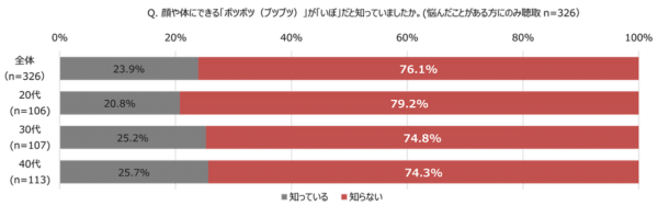 “ポツポツ” について「悩んだことがある」 と回答した人に「いぼ」に効く市販薬(ドラッグストアなどで購入できる医薬品)があることを知っているか尋ねたところ、市販薬の存在を「知らない」と答えた人は58.6%にのぼりました。