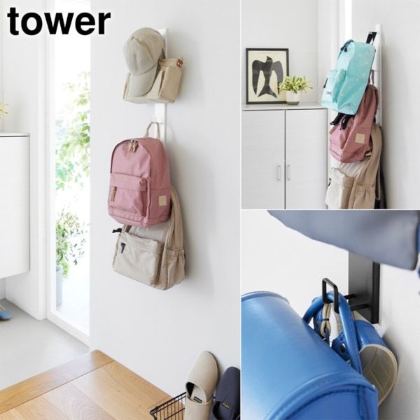 手に取りやすい位置に掛けられるため、外出時の持ち出しもスムーズ。ハンドバッグや帽子、ランドセルの持ち手部分を引っ掛けて、通学グッズをまとめて収納するのもおすすめです。