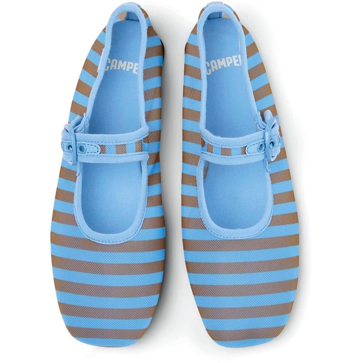 ブルー×ブラウンのボーダーがコーデのアクセントにぴったり。サステナビリティと耐久性を兼ね備えた靴底素材で、クッション性にも優れているため、快適な履き心地を一日中キープします。¥24,200/カンペール(カンペールジャパン)