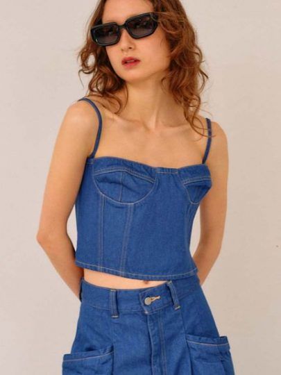 アジャスター付きでサイズ感を調整できるデニムビスチェ。ロンTや半袖Tシャツ、タンクトップの上に重ねてもおしゃれ!