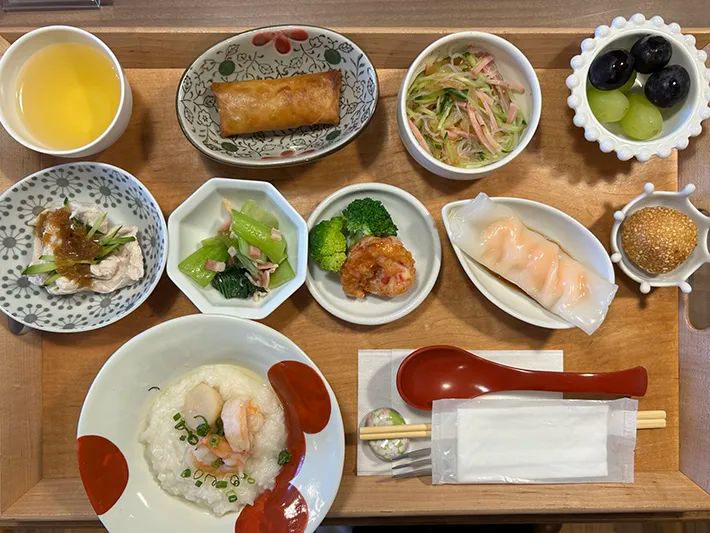 お祝い膳は重箱スタイルで、天ぷらの盛り合わせやシャインマスカットなどが並んでいたとのこと。『ごちそう感』と家庭的な安心感、どちらもあるのが素敵です。