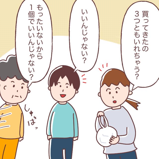 妻と義母は仲が悪いわけではありませんが、日常のちょっとしたことで言い合いになることが多々あります。妻が夕食の支度をしようと冷蔵庫を開けると、新しく買っておいた方の卵が減っていることに気づきました。きっと義母の仕業だろうと思った妻は義母を叱りますが、どうやら犯人は別にいる様子。するとタイミング良くリビングに入ってきた夫が「僕かも」と自首してきました。それを聞いた妻と義母は怒り心頭。まるで打ち合わせでもしたかのように、息ぴったりで夫を叱ったのでした。まったく、仲が良いのか悪いのか。