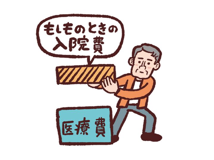 厚生労働省の資料によると、65歳から89歳までの25年間に窓口で支払う医療費の自己負担額は、平均180万~200万円※。ここに、急な病気やけがで長期入院が必要になった場合を想定して上乗せします。70歳以上の医療費の自己負担限度額は月5万7600円※。10カ月入院したと仮定すると57万6000円。これらを合計した約250万円が、老後の医療費として準備すべき一つの目安といえます。