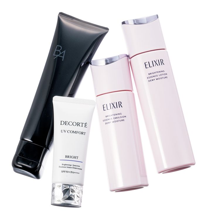 左から:B.A クレンジングクリーム 130g ¥12,100※3/1発売()UV コンフォート ブライト SPF50+・PA++++ [医薬部外品]30ml ¥5,280()エリクシール ブライトニング エマルジョン みずみずしいタイプ ca[医薬部外品]130ml ¥4,400、同 ローション みずみずしいタイプ ca[医薬部外品]170ml ¥3,740※ともに2/21発売〈ともに編集部調べ〉()