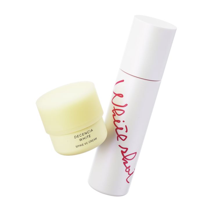 左から:ディセンシアホワイト スパイク-VC クリーム[医薬部外品] 30g ¥6,600 ※3/10発売()ホワイトショット クリアスキンローション[医薬部外品]150ml ¥9,350()