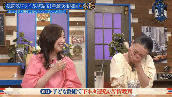 かつて森口は、生放送の教育番組に盟友・井森美幸と出演。当時は、「しょっちゅう苦情の電話がお母さんたちから来た」という。その理由は、2人が下ネタ発言をするから。森口的に、下ネタのレベルはどれも軽かったらしい。