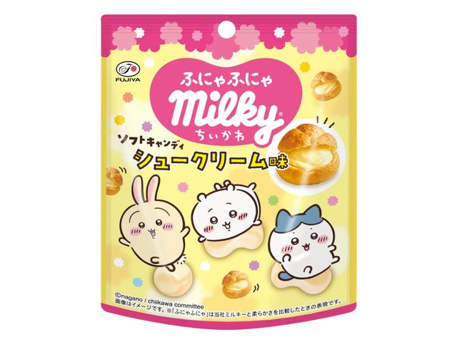 ・「ちいかわ」のほっと心がほどける世界観をイメージした、優しい味わいのシュークリーム味ミルキー ・やわらかくふにゃふにゃの食感を楽しめる