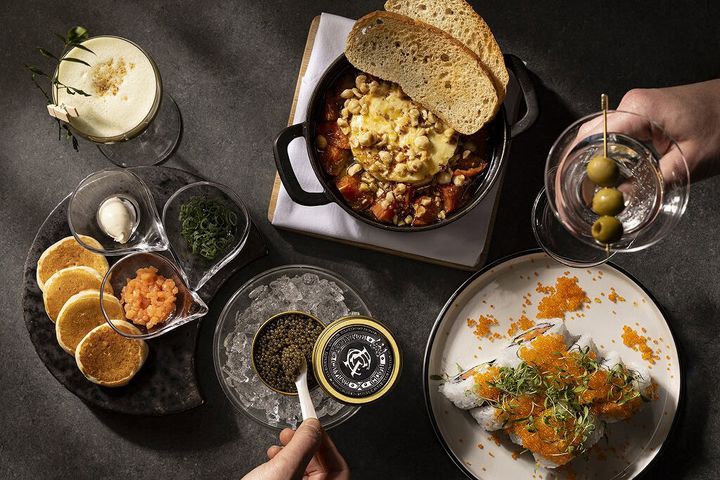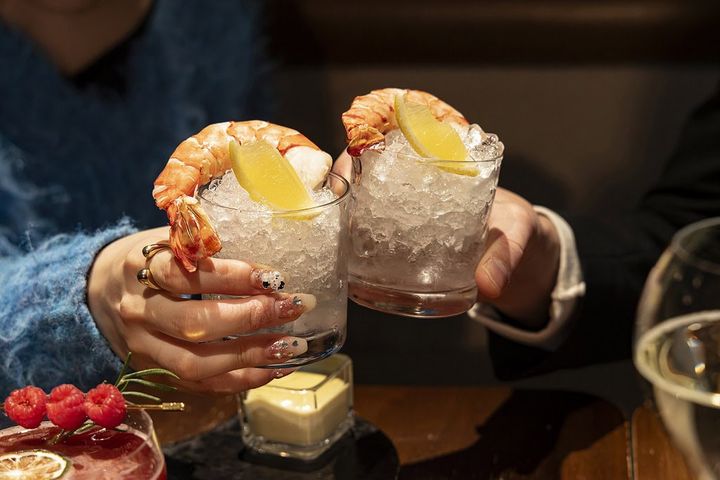 西洋海岸のムードただよう、カルフォルラウンジエリアも誕生!名物のジャン歩シュリンプの「ショット」やキャビア、ロブスターロールからタコスなど、トレンド感溢れる目でも味わっても楽しめるラウンジ料理を満喫して。