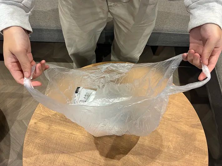 実際に買い物後のビニール袋で試してみます。
