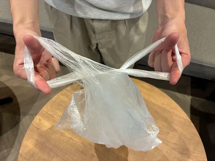 これまで買い物の際は、袋を適当なちょうちょ結びにしていた筆者。結び直す手間がかかる場面もあり、意外と時間を取られていました…。