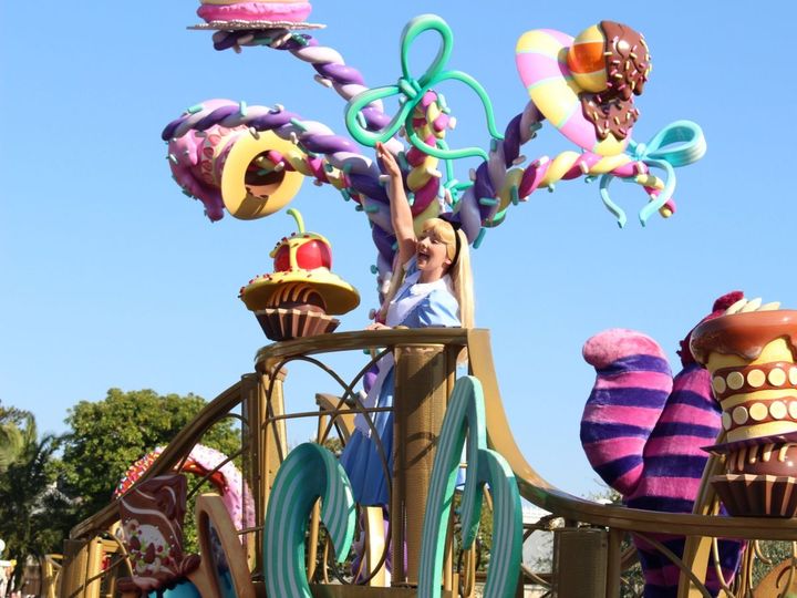 こちらは編集部員の推し、『ふしぎの国のアリス』のフロート。アリスのほかに、へんてこりんなお茶会を開催するマッドハッターや、人気キャラクターのチシャ猫も登場。今年もかわいいです…!!