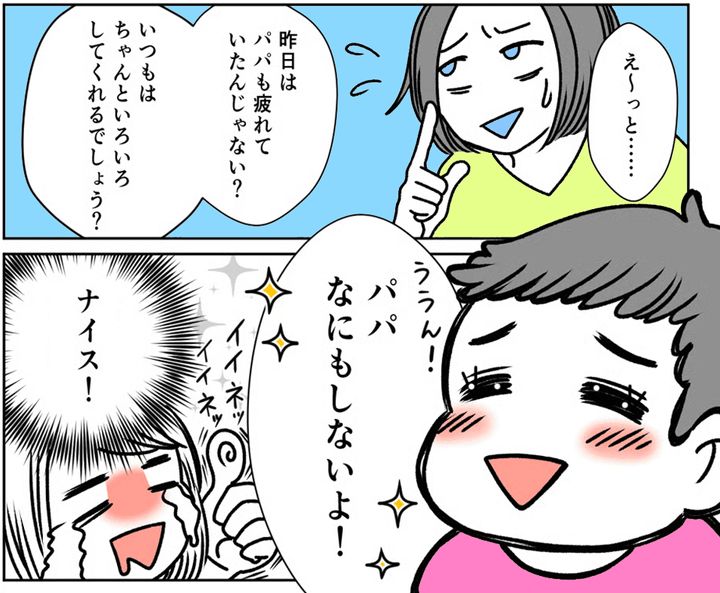 娘さんが「パパは家では何もしない」と言ったことに対し、ママたちも「ナイス」だと思ったようです。家で投稿者さんや父親の様子をしっかり見ているからこそ、娘さんは父親を非難したのでしょう。娘さんの言葉でその場の空気を凍らせてしまったのは事実かもしれませんが、事実をはっきりと言えた娘さんを褒めてあげたいですね。
