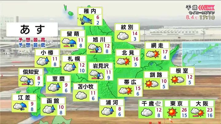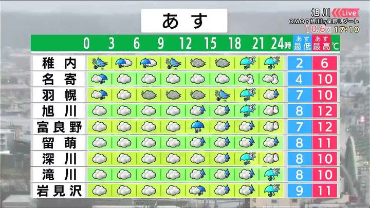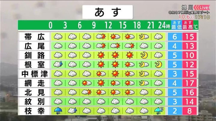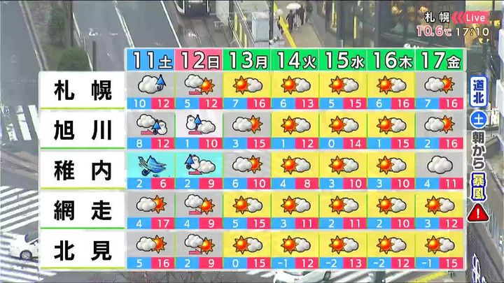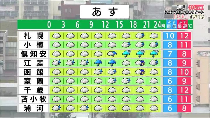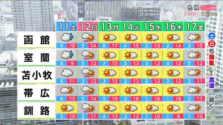 ※10日午後5時時点の情報です。最新の気象情報は、HBCウェザーセンターのホームページなどでご確認ください。HBCは気象庁の認可を2001年に得て以来、民間気象会社の一つとして「HBCの独自予報」を発信しています。