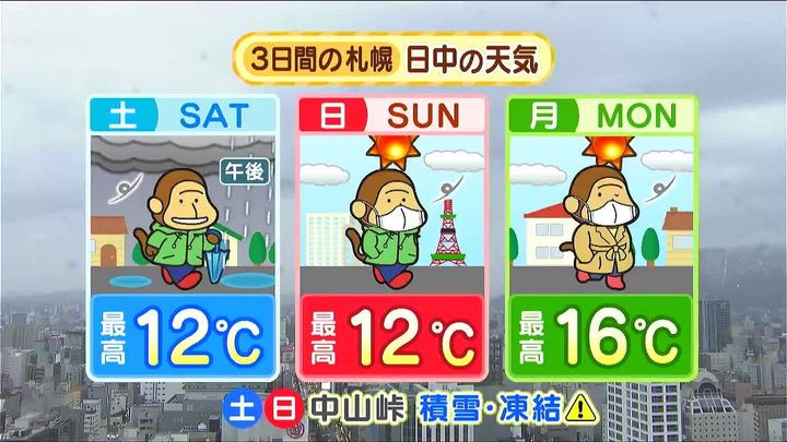 3日間の札幌です! 土日月の天気をもんすけでお伝えします!