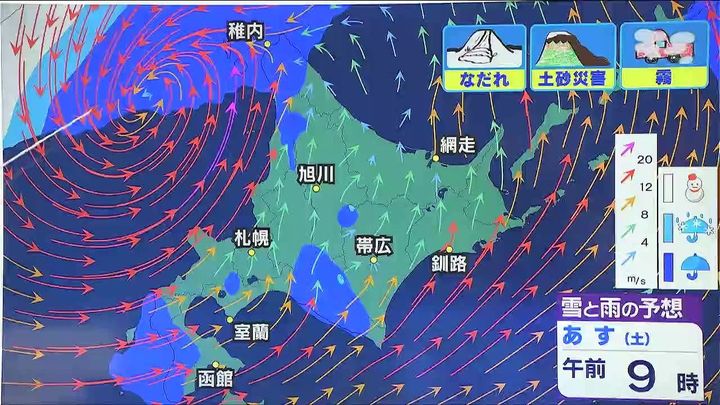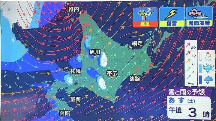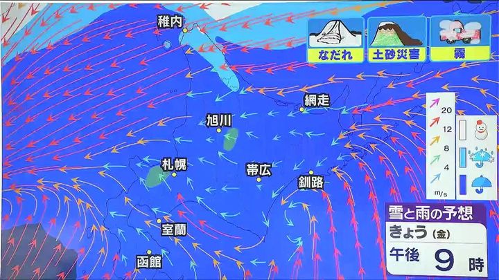 道北や道央、道南方面で午後を中心に雨や雪が降ります。あす11日(土)も風が強まり、実際の気温より寒く感じるでしょう。