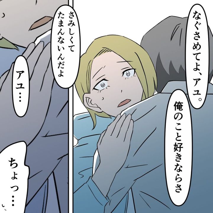 「なぐさめてよアユ・俺のこと好きならさ。さみしくてたまんないんだよ、アユ・・」そう言われた私は「ちょっ・・」と言い返そうとするも何も言えず、タクマさんの腕を振り払うこともできませんでした。