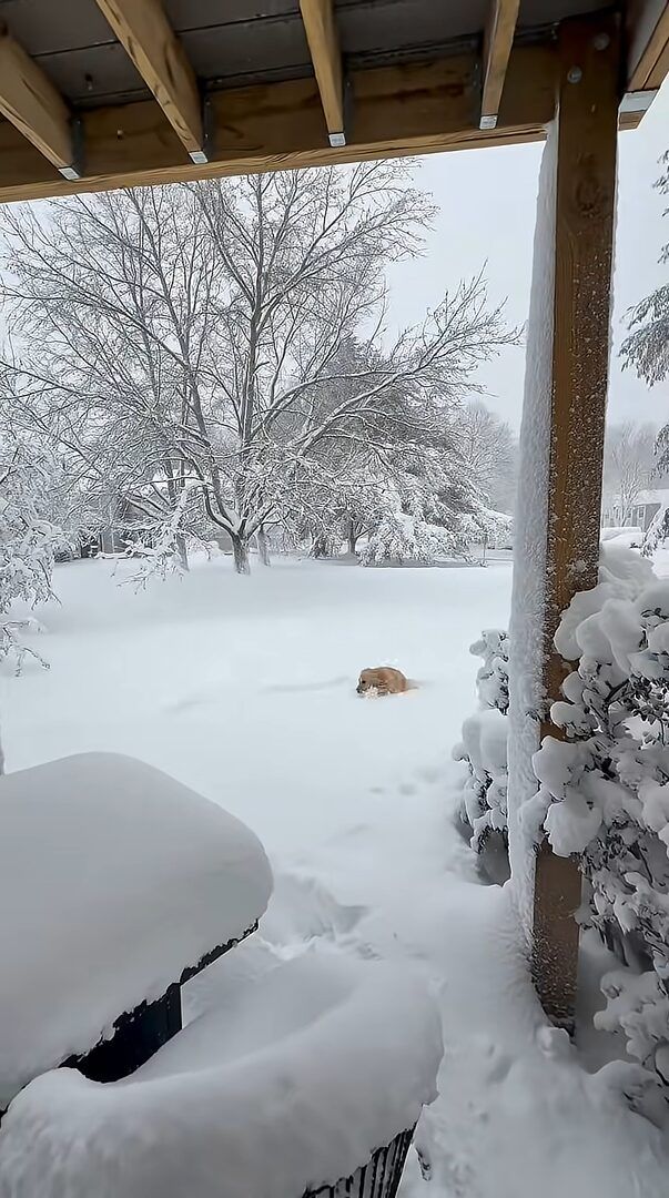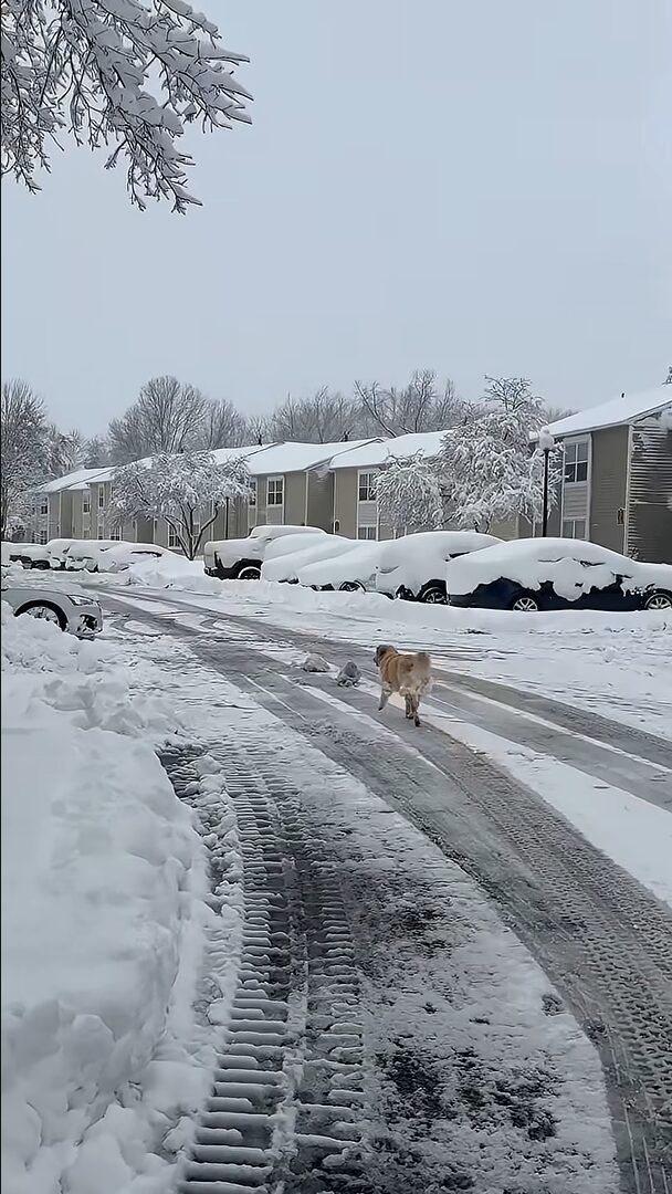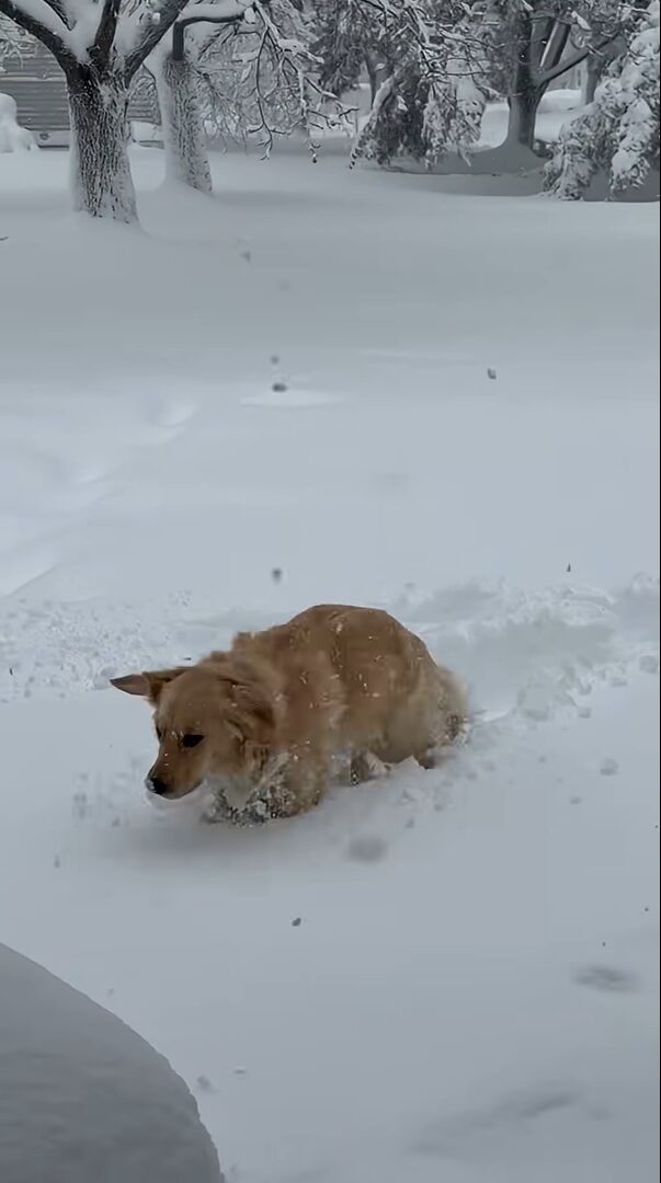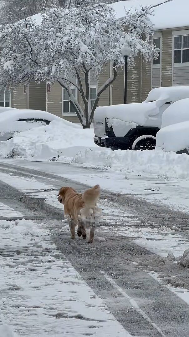 3. 雪遊びをいっぱい楽しんだんだね~!ゴキゲンな足取りのイヌが雪玉を体にたくさんつけている!!【アメリカ・動画】