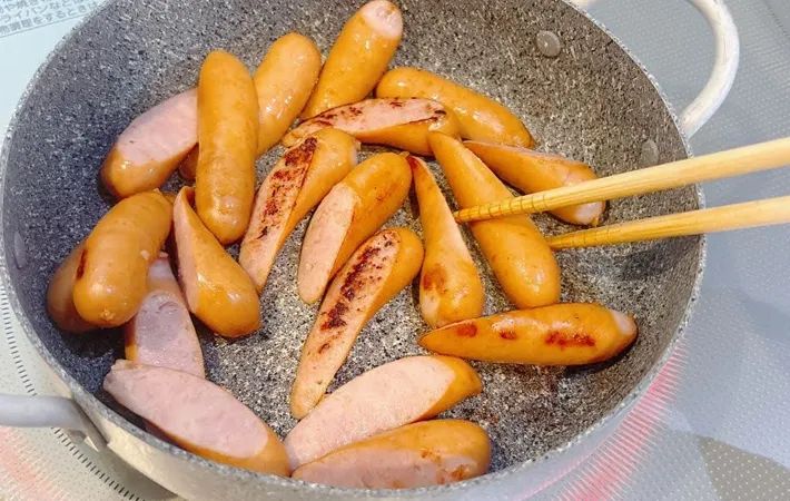 ウインナーが焼けたら取り出しておきます。