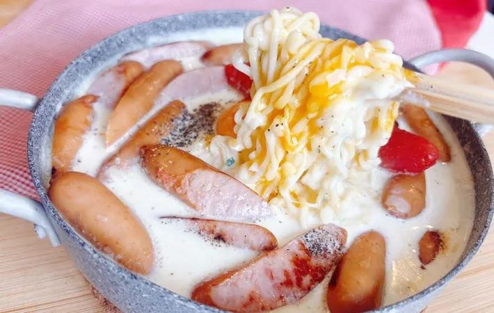 チーズのコク、ウインナーの旨みと麺が絡まって、濃厚なのに箸が止まりません。