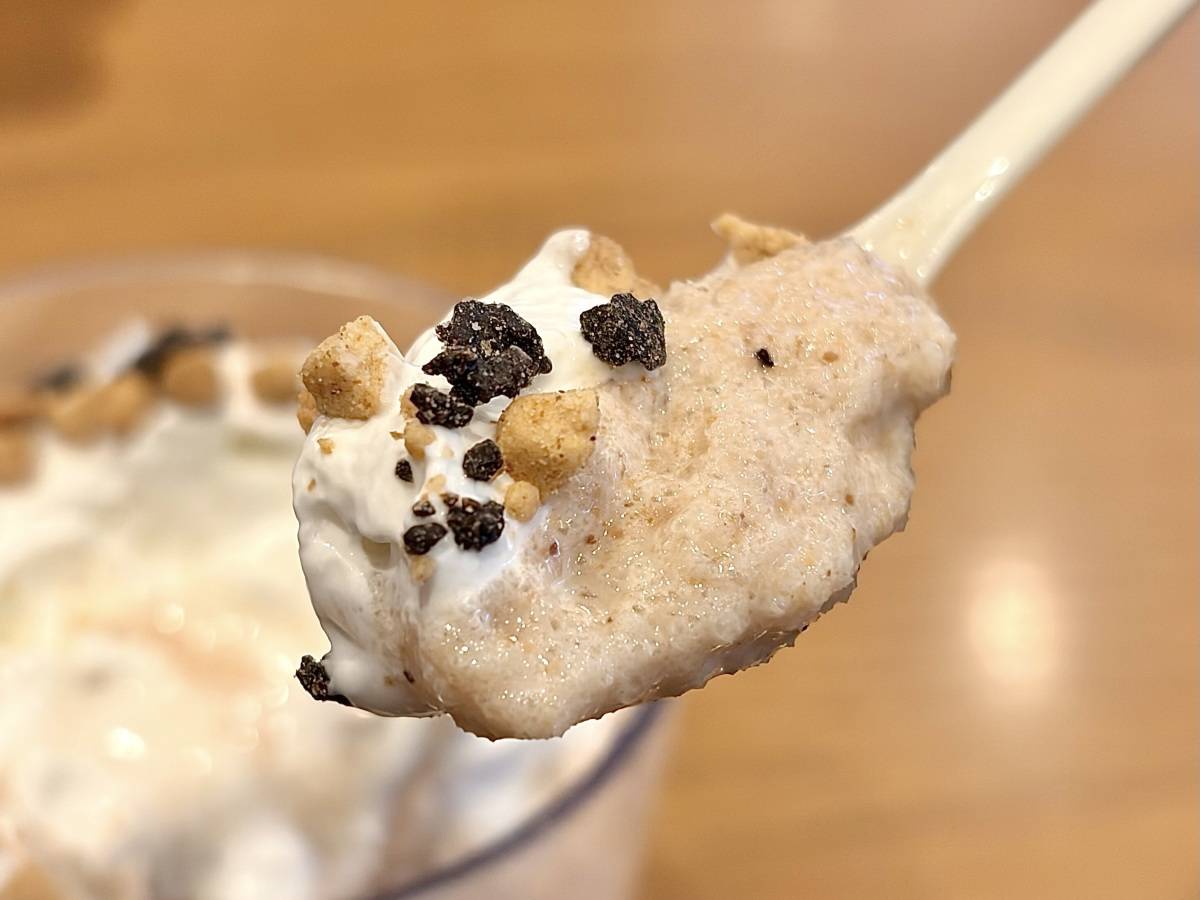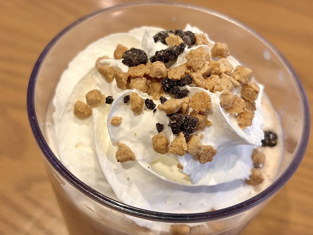 ホイップにトッピングされたベイクドチョコ&クッキーのザクザク食感が、全体のよいアクセントに。