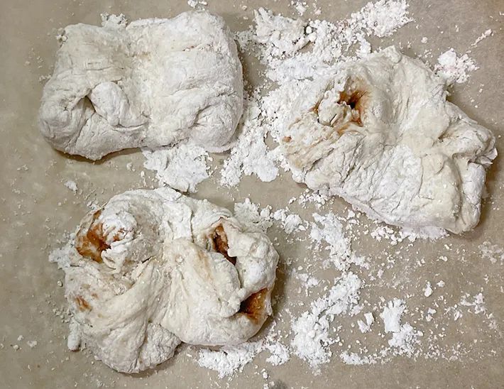 後日、打ち粉を少なくして作り直してみたのですが、きれいに包めず唐揚げのような見た目になりました…。