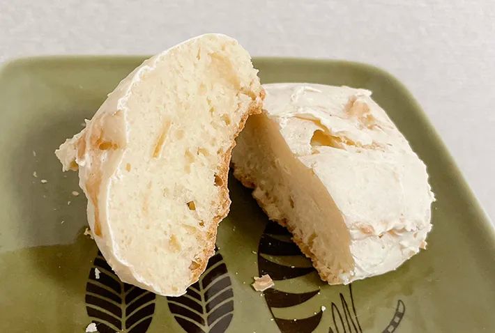 重曹の苦みを少し感じたので、スープに浸したり、ジャムを塗ったりと、何かと合わせて食べるほうがいいでしょう。