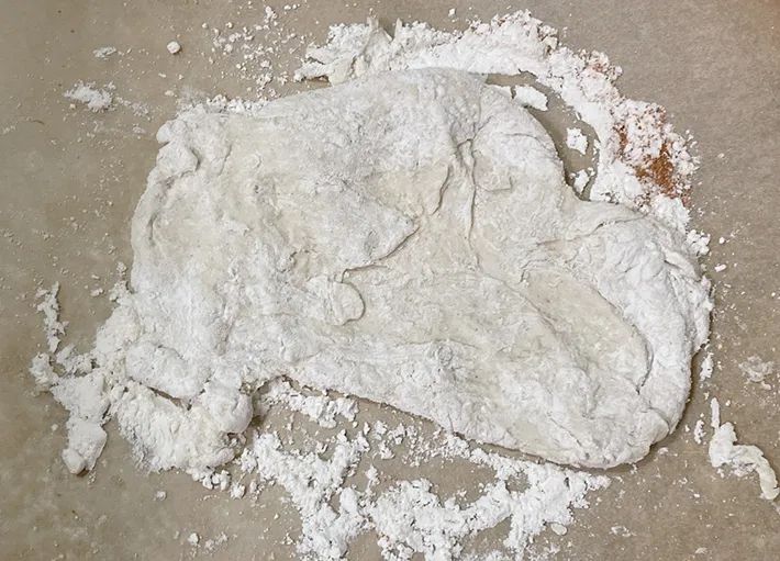 なんとかオーブンに移動させて焼くと、主原料が小麦粉なのと、打ち粉をたくさんしていたので、真っ白な見た目に。