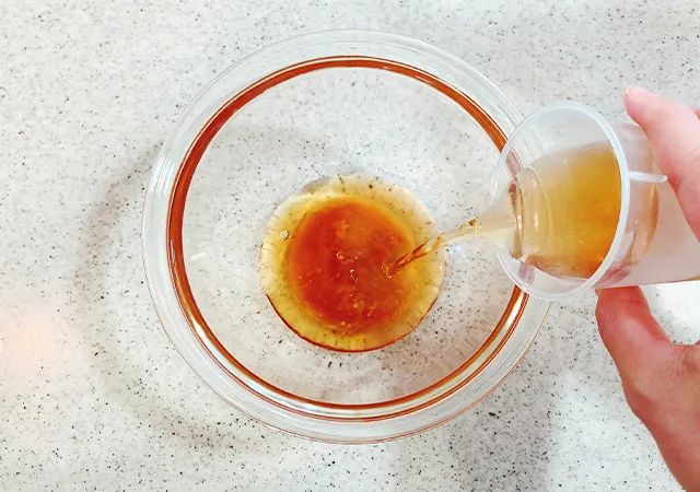 次に、砂糖とめんつゆ、麦茶を合わせて、たれ調味料を作ります。