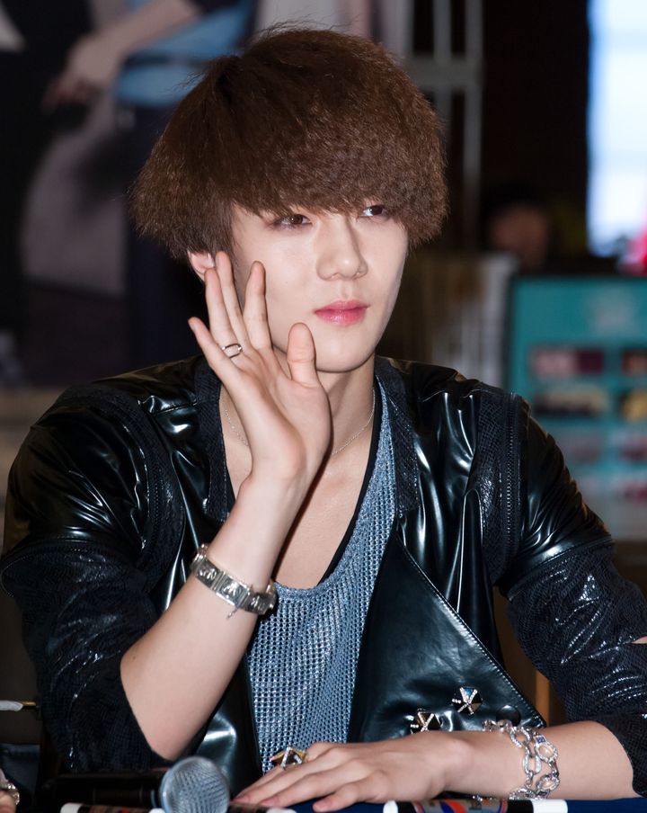 デビュー当時、はっきりとした顔立ちのメンバーが多いEXOの中で、親近感の湧くナチュラルなイケメンとして注目を集めたベクヒョン。ハイライトを効かせたブラウンヘアをくるくる巻いて華やかにセット。アイラインは目尻を少し延長させつつ、ややスモーキなアイメイクを完成。