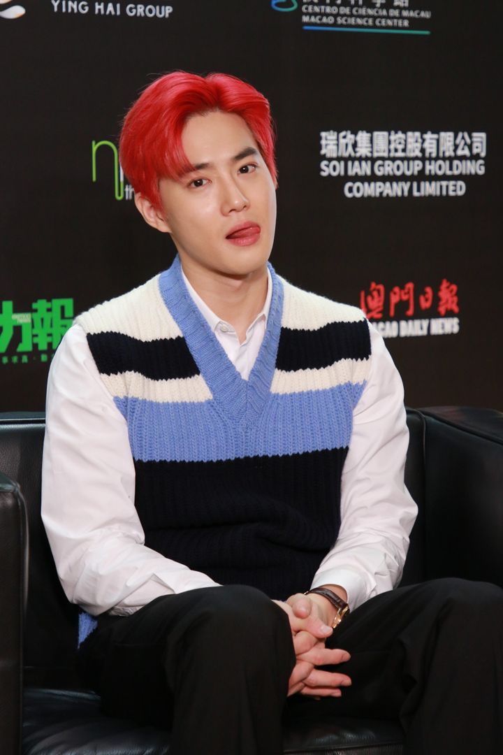 アンバサダーとして「第4回マカオ国際映画祭」に出席したスホは、鮮やかなレッドヘアでひと際存在感を発揮。