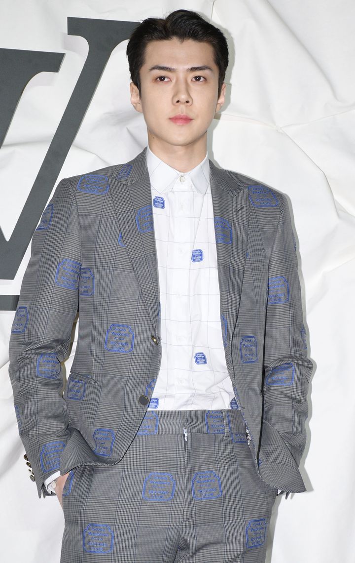 ソウルで行われた「ルイ・ヴィトン」のイベントにて。凛々しい顔立ちのセフンは、タイトにまとめたヘアスタイルとナチュラルメイクが好相性。リップはミルキーなピンクカラーで上品さを添えて。