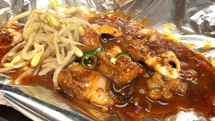 韓国風の味噌で、うまみのある甘辛い味つけに、たこやモツのぷりぷり食感がたまらない!