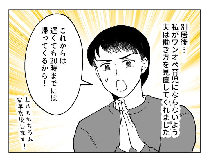 コウセイさんも上司に掛け合って働き方を見直してくれたようで、育児に積極的に参加してくれるようになったそうです。フミカさんもストレスが減ったからか、体調がよくなって、以前のように「体がしんどくて動けない……」といったことがなくなった様子。そのおかげで少しずつ気持ちも前向きになって、コウセイさんが働き方を変えたことで減った収入をカバーできるよう職探しをはじめました。まだまだムリは禁物ですが、このお互いが安心できる距離感で、これからも仲のよい親子関係を続けていけるといいですね!