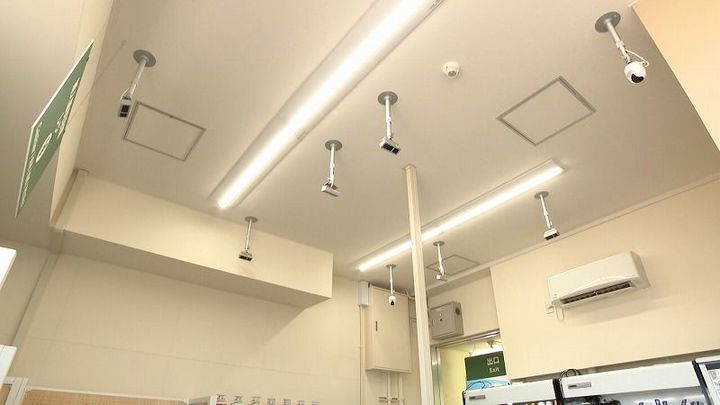中に入ってみると、天井にはカメラ、そして商品棚には重量センサーが取り付けられています。