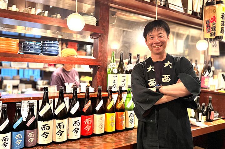 ピュアな甘味と爽やかな酸味が見事に調和する美酒「而今(じこん)」。2005年の銘柄デビュー時にはわずか30石から始まり、蔵元杜氏の大西唯克(ただよし)さんの才覚とたゆまぬ努力で、今や「十四代」と並ぶ入手困難な人気銘柄へとステップアップした。スター杜氏・大西さんの歩みと、「十四代」が与えた影響について、2回にわたってお送りする(写真は、東京・西日暮里の鰻と地酒の店「稲毛屋」で、2025年撮影)。