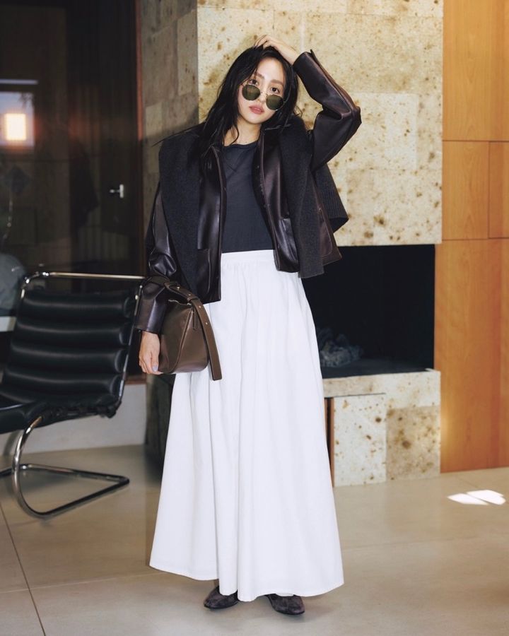 4月11日(土)、ユニクロのレザー風ジャケットは1枚は持っておきたいマストバイアイテム。コンパクトなシルエットで上半身をすっきり見せてくれます。辛口なレザーには、可憐な白スカートを合わせてやわらかく中和して。ダークトップスとのコントラストでメリハリを効かせれば、モードとフェミニンが絶妙にミックスされた甘辛コーデになります。