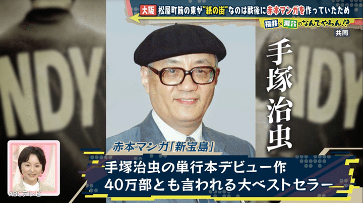 赤本マンガは庶民の間で大流行したが、その火付け役となった漫画家があの手塚治虫。森さんいわく、当時大阪大学の医学部生だった手塚は原稿を持って松屋町の出版社に通っていたとのこと。